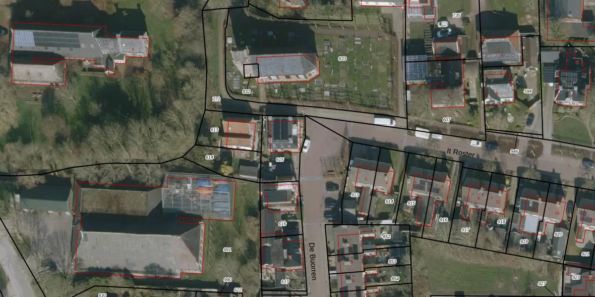Het perceel waarop De Buorren 1 staat heeft een oppervlakte van 300 m². Dit is een groot perceel. De perceeloppervlakte wordt geregistreerd door het Kadaster. Gedetailleerde informatie over de maten van dit perceel kunt u vinden in het rapport Kadastrale kaart met maatvoering van De Buorren 1.