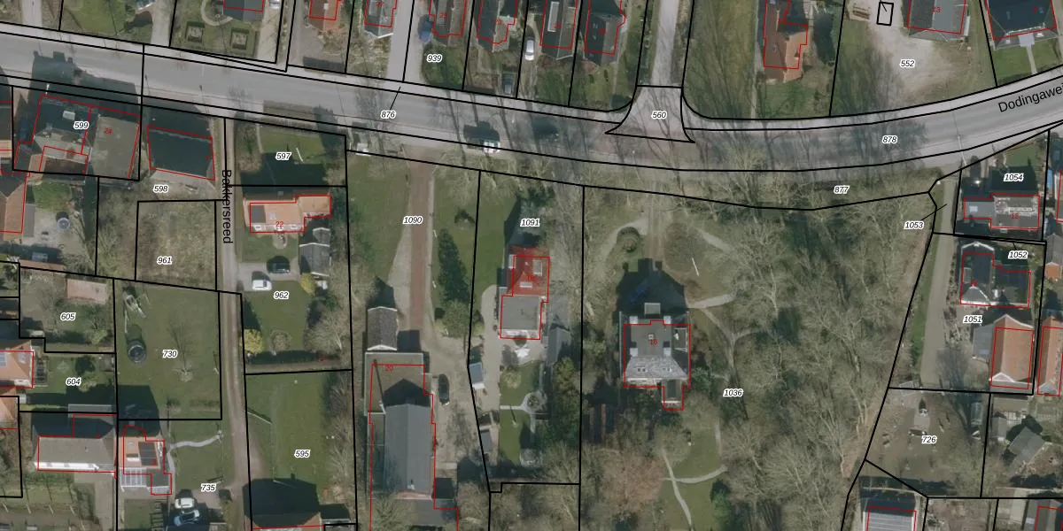 Het perceel waarop Dodingawei 18 staat heeft een oppervlakte van 1155 m². Dit is een zeer groot perceel. De perceeloppervlakte wordt geregistreerd door het Kadaster. Gedetailleerde informatie over de maten van dit perceel kunt u vinden in het rapport Kadastrale kaart met maatvoering van Dodingawei 18.