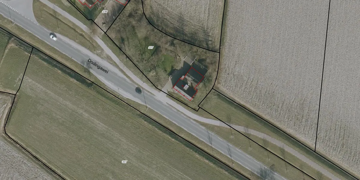 Dodingawei 41 is gelegen op kadastraal perceel EEX00L107. Deze kadastrale aanduiding is uniek en wordt gebruikt door het Kadaster om eigendomsrechten en andere zakelijke rechten vast te leggen. Het perceel maakt onderdeel uit van de kadastrale gemeente Ee.