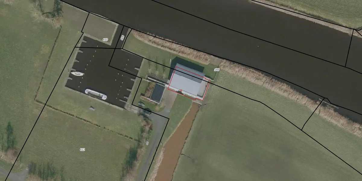 Het perceel waarop het adres ligt is WKM00-H-612. De afkorting 'WKM00' staat voor kadastrale gemeente Workum. Het perceel is kleiner dan gemiddeld in Workum. Het perceel is 1,3 ha groot, terwijl het gemiddelde ligt op 3,3 ha. Het grootste perceel in de kadastrale gemeente is 65,17 km². Het kleinste perceel heeft een oppervlakte van 0 m². Er zijn geen andere adressen aanwezig op het perceel. In de Basisregistratie Kadaster (BRK) werden de grenzen van het perceel geregistreerd op 19-08-2014.