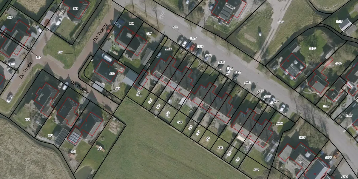 Het adres is gelegen op perceel 1929 in de sectie D en de kadastrale gemeente Oosterend. De kadastrale aanduiding is aldus OTE00-D-1929. Het perceel is kleiner dan gemiddeld in Oosterend. Het perceel is 244 m² groot, terwijl het gemiddelde ligt op 1,2 ha. Het grootste perceel in de kadastrale gemeente is 20,6 ha. Het kleinste perceel heeft een oppervlakte van 0 m². Er zijn geen andere adressen aanwezig op het perceel. De huidige grenzen van het perceel zijn digitaal in de Basisregistratie Kadaster (BRK) geregistreerd op 05-07-2006.