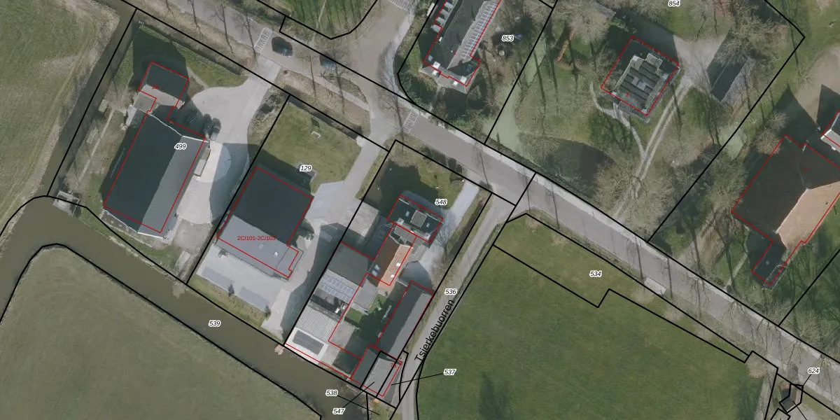 Het adres is gelegen op perceel 548 in de sectie G en de kadastrale gemeente Oosterend. De kadastrale aanduiding is aldus OTE00-G-548. Het perceel is kleiner dan gemiddeld in Oosterend. Het perceel is 1397 m² groot, terwijl het gemiddelde ligt op 1,2 ha. Het grootste perceel in de kadastrale gemeente is 20,6 ha. Het kleinste perceel heeft een oppervlakte van 0 m². Er zijn 2 adressen aanwezig op het perceel. In de Basisregistratie Kadaster (BRK) werden de grenzen van het perceel geregistreerd op 26-03-2007.