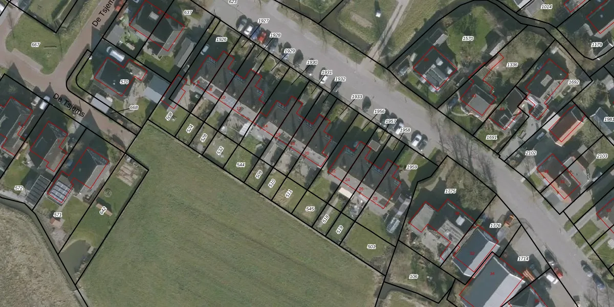 Het adres is gelegen op perceel 1933 in de sectie D en de kadastrale gemeente Oosterend. De kadastrale aanduiding is aldus OTE00-D-1933. De gemiddelde perceelgrootte in Oosterend is 1,2 ha. Dit perceel is kleiner: de perceeloppervlakte bedraagt 251 m². Het grootste perceel in de kadastrale gemeente is 20,6 ha. Het kleinste perceel heeft een oppervlakte van 0 m². Er zijn geen andere adressen aanwezig op het perceel. De laatste wijziging in het de Basisregistratie Kadaster (BRK) was op 13-04-2006.