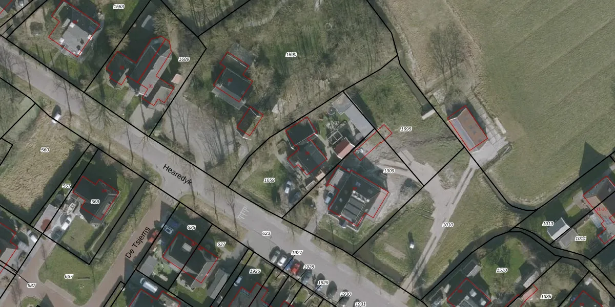 Het perceel waarop Hearedyk 35 staat heeft een oppervlakte van 890 m². Dit is een groot perceel. De perceeloppervlakte wordt geregistreerd door het Kadaster. Gedetailleerde informatie over de maten van dit perceel kunt u vinden in het rapport Kadastrale kaart met maatvoering van Hearedyk 35.