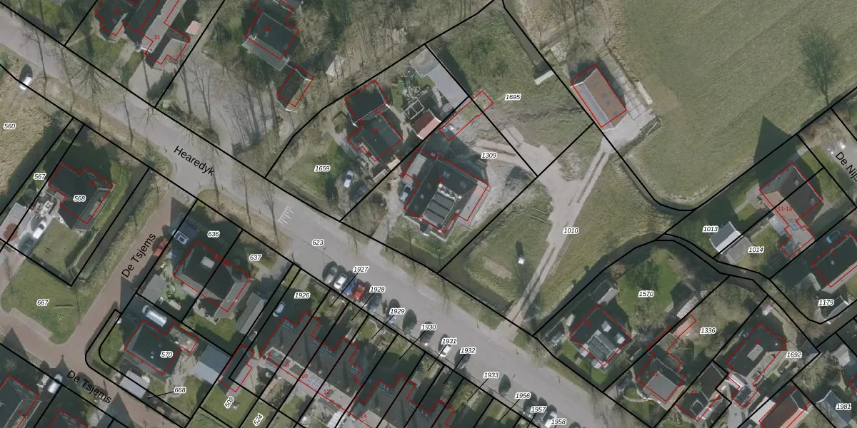 Het perceel waarop Hearedyk 37 staat heeft een oppervlakte van 880 m². Dit is een groot perceel. De perceeloppervlakte wordt geregistreerd door het Kadaster. Gedetailleerde informatie over de maten van dit perceel kunt u vinden in het rapport Kadastrale kaart met maatvoering van Hearedyk 37.