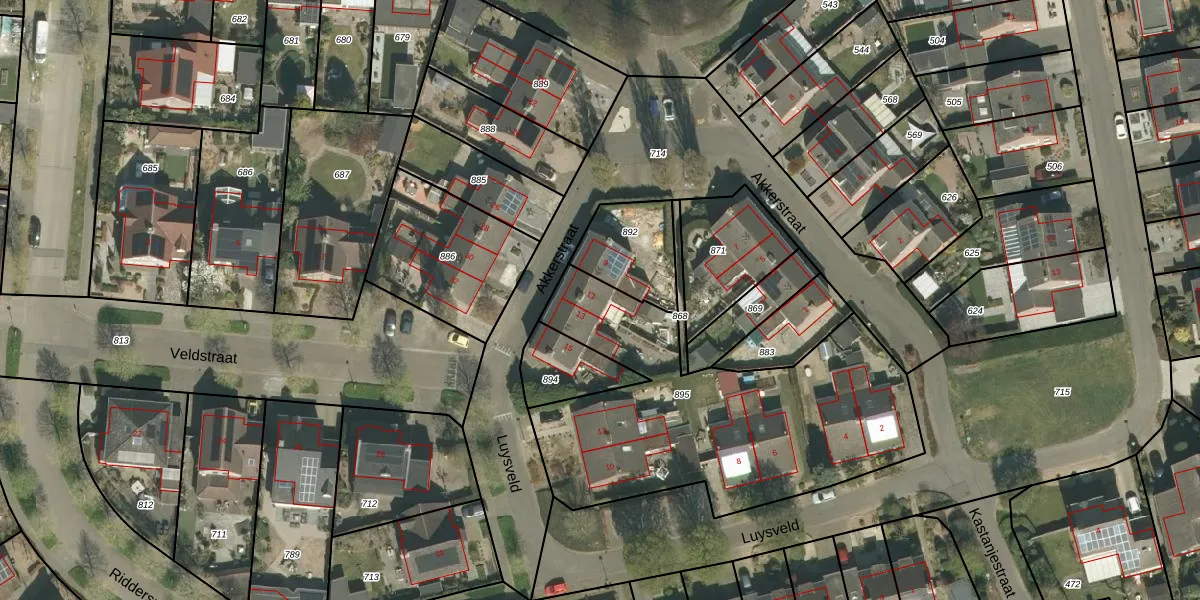 Het perceel waarop Akkerstraat 11 staat heeft een oppervlakte van 1544 m². Dit is een zeer groot perceel. De perceeloppervlakte wordt geregistreerd door het Kadaster. Gedetailleerde informatie over de maten van dit perceel kunt u vinden in het rapport Kadastrale kaart met maatvoering van Akkerstraat 11.