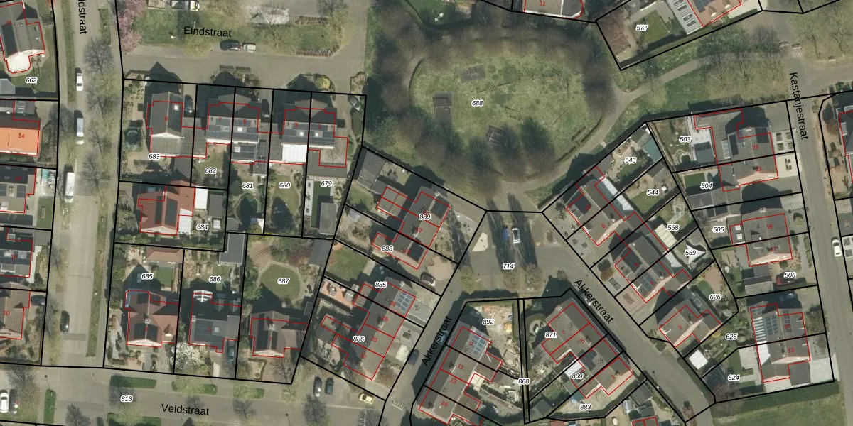 Het perceel waarop Akkerstraat 20 staat heeft een oppervlakte van 444 m². Dit is een groot perceel. De perceeloppervlakte wordt geregistreerd door het Kadaster. Gedetailleerde informatie over de maten van dit perceel kunt u vinden in het rapport Kadastrale kaart met maatvoering van Akkerstraat 20.
