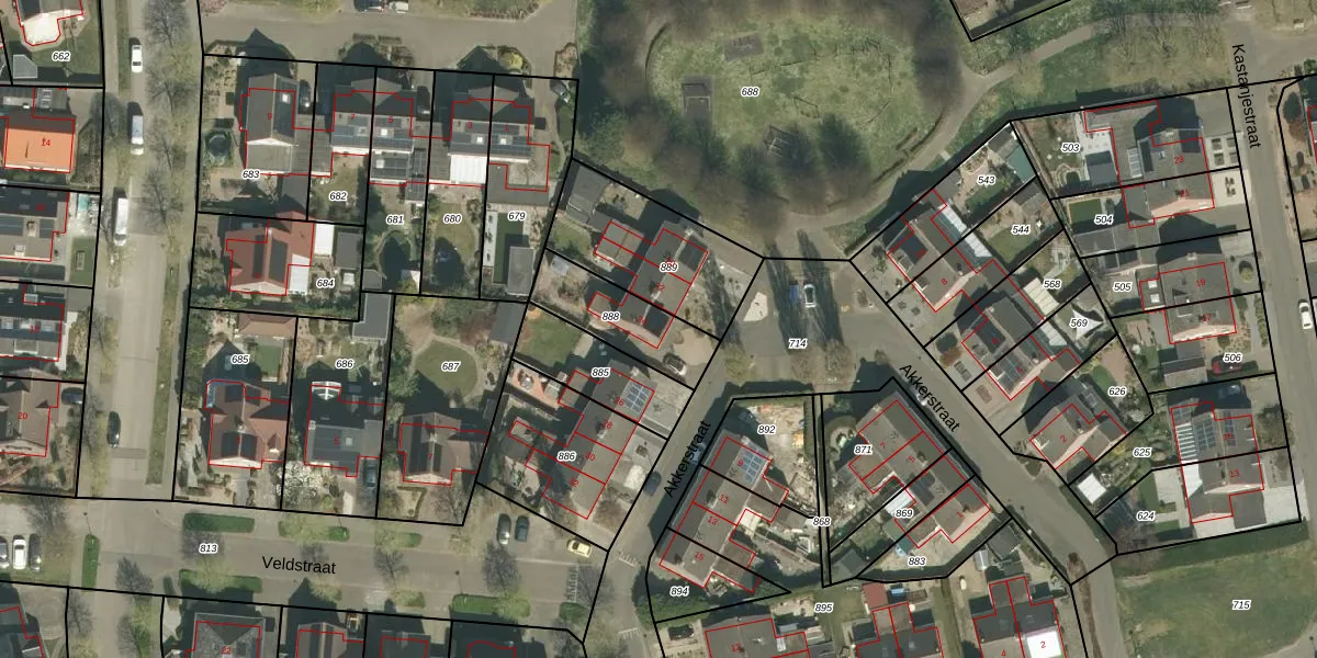 Het perceel waarop Akkerstraat 24 staat heeft een oppervlakte van 249 m². Dit is een middelgroot perceel. De perceeloppervlakte wordt geregistreerd door het Kadaster. Gedetailleerde informatie over de maten van dit perceel kunt u vinden in het rapport Kadastrale kaart met maatvoering van Akkerstraat 24.