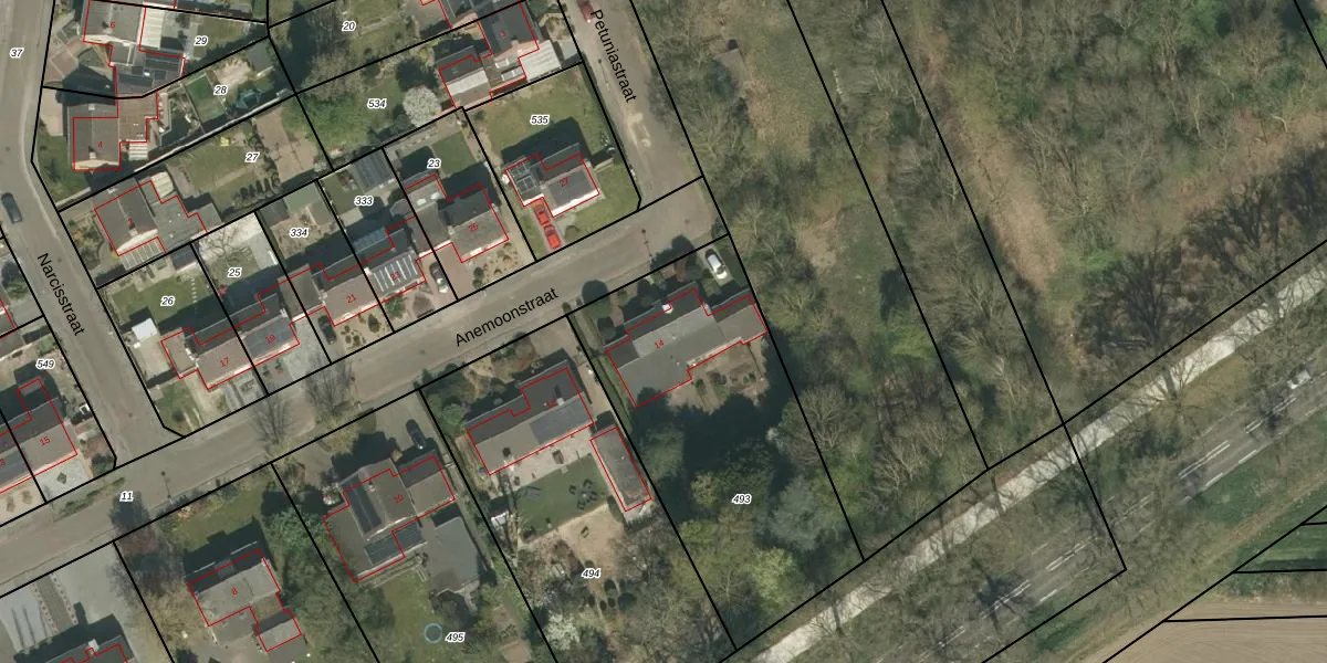 Gebruik de zoekbalk of klik op een perceel voor informatie over de adressen binnen dit perceel.