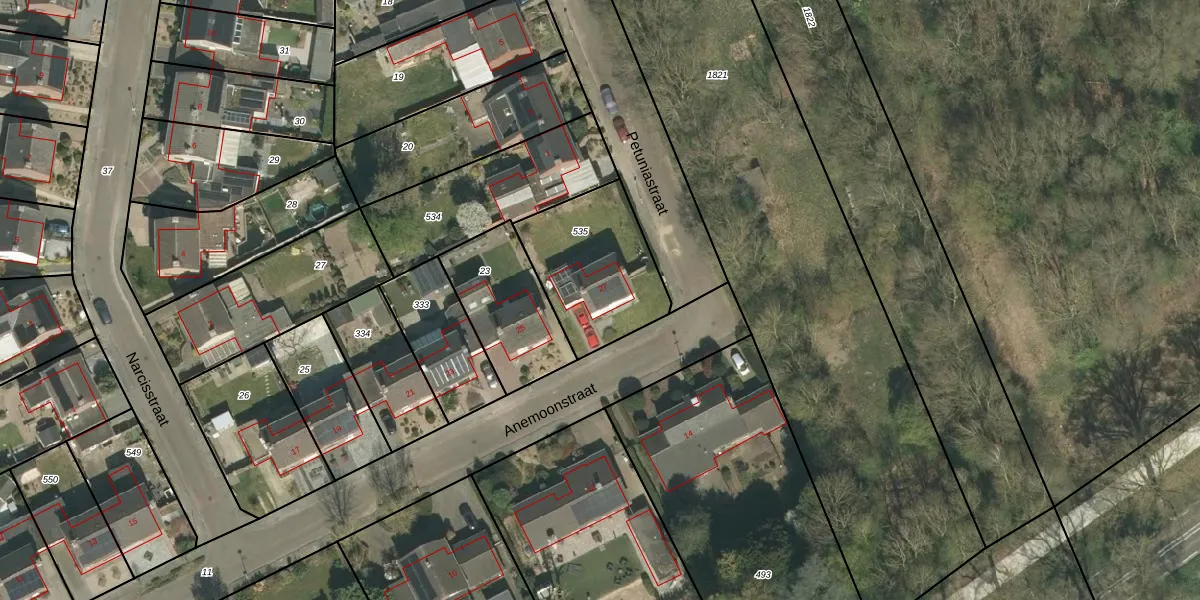 Gebruik de zoekbalk of klik op een perceel voor informatie over de adressen binnen dit perceel.