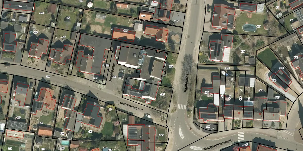 Het perceel waarop Brigittahofje 11 staat heeft een oppervlakte van 535 m². Dit is een groot perceel. De perceeloppervlakte wordt geregistreerd door het Kadaster. Gedetailleerde informatie over de maten van dit perceel kunt u vinden in het rapport Kadastrale kaart met maatvoering van Brigittahofje 11.
