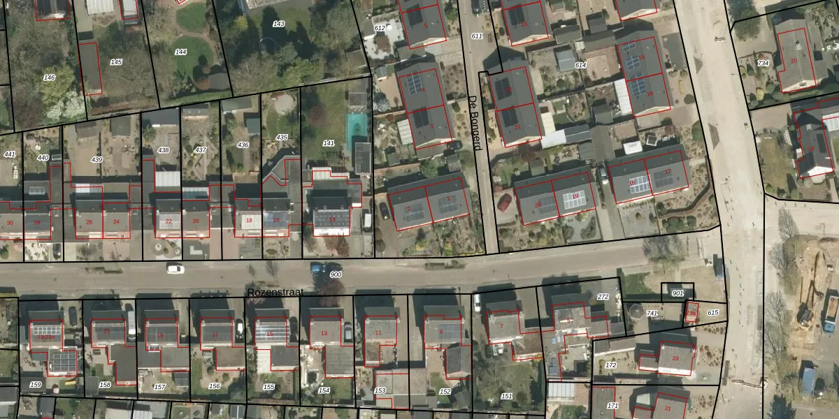 Het perceel waarop De Bongerd 2 staat heeft een oppervlakte van 2210 m². Dit is een zeer groot perceel. De perceeloppervlakte wordt geregistreerd door het Kadaster. Gedetailleerde informatie over de maten van dit perceel kunt u vinden in het rapport Kadastrale kaart met maatvoering van De Bongerd 2.