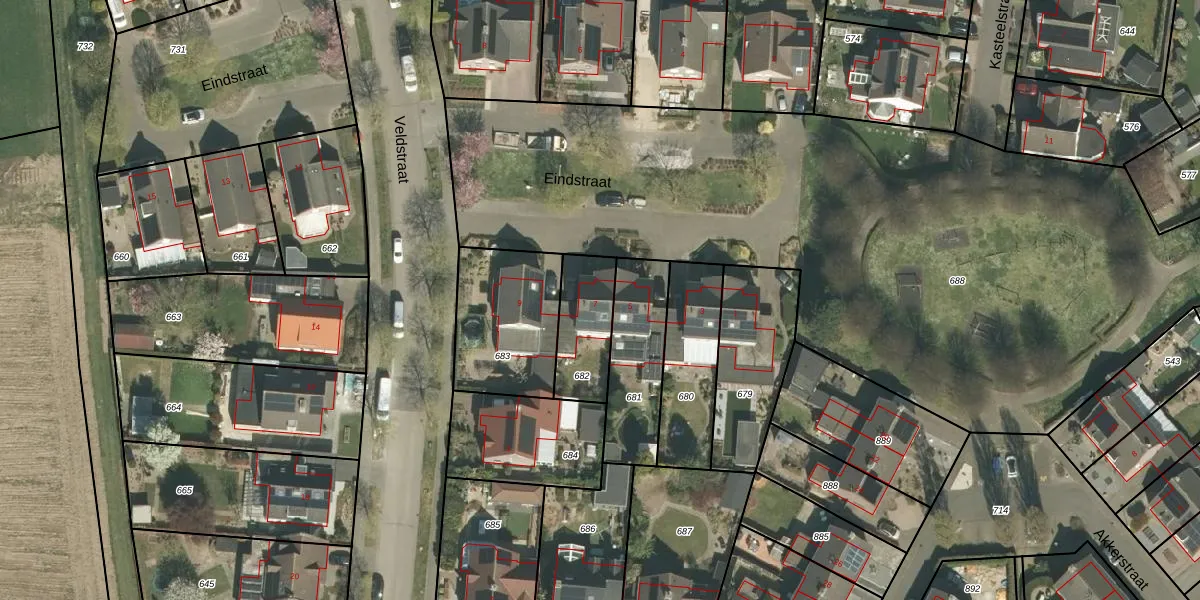 Eindstraat 7 is gelegen op kadastraal perceel HSL00E682. Deze kadastrale aanduiding is uniek en wordt gebruikt door het Kadaster om eigendomsrechten en andere zakelijke rechten vast te leggen. Het perceel maakt onderdeel uit van de kadastrale gemeente Hunsel.