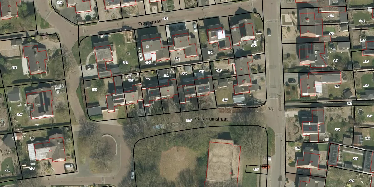 Gebruik de zoekbalk of klik op een perceel voor informatie over de adressen binnen dit perceel.