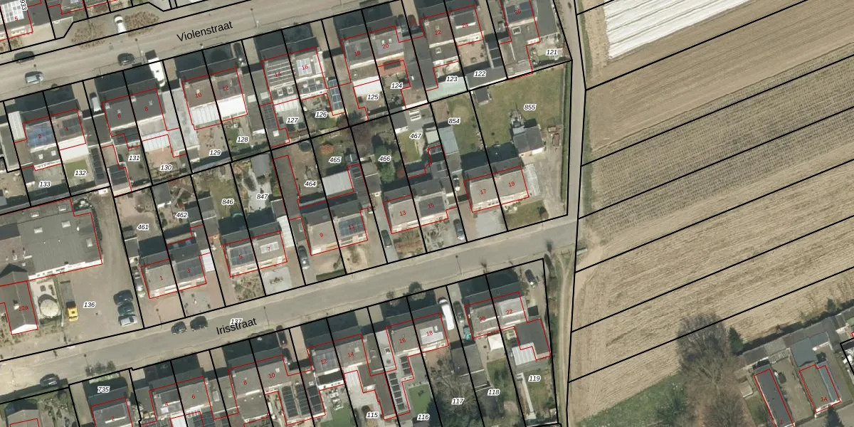 Gebruik de zoekbalk of klik op een perceel voor informatie over de adressen binnen dit perceel.