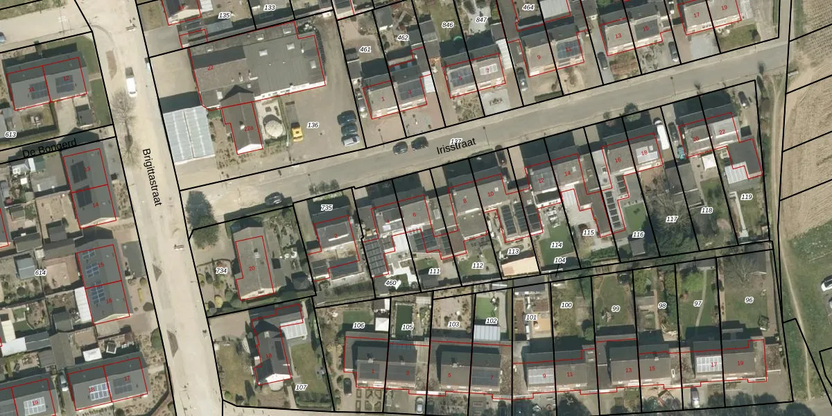 Gebruik de zoekbalk of klik op een perceel voor informatie over de adressen binnen dit perceel.