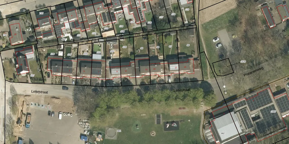 Het perceel waarop Leliestraat 13 staat heeft een oppervlakte van 337 m². Dit is een groot perceel. De perceeloppervlakte wordt geregistreerd door het Kadaster. Gedetailleerde informatie over de maten van dit perceel kunt u vinden in het rapport Kadastrale kaart met maatvoering van Leliestraat 13.