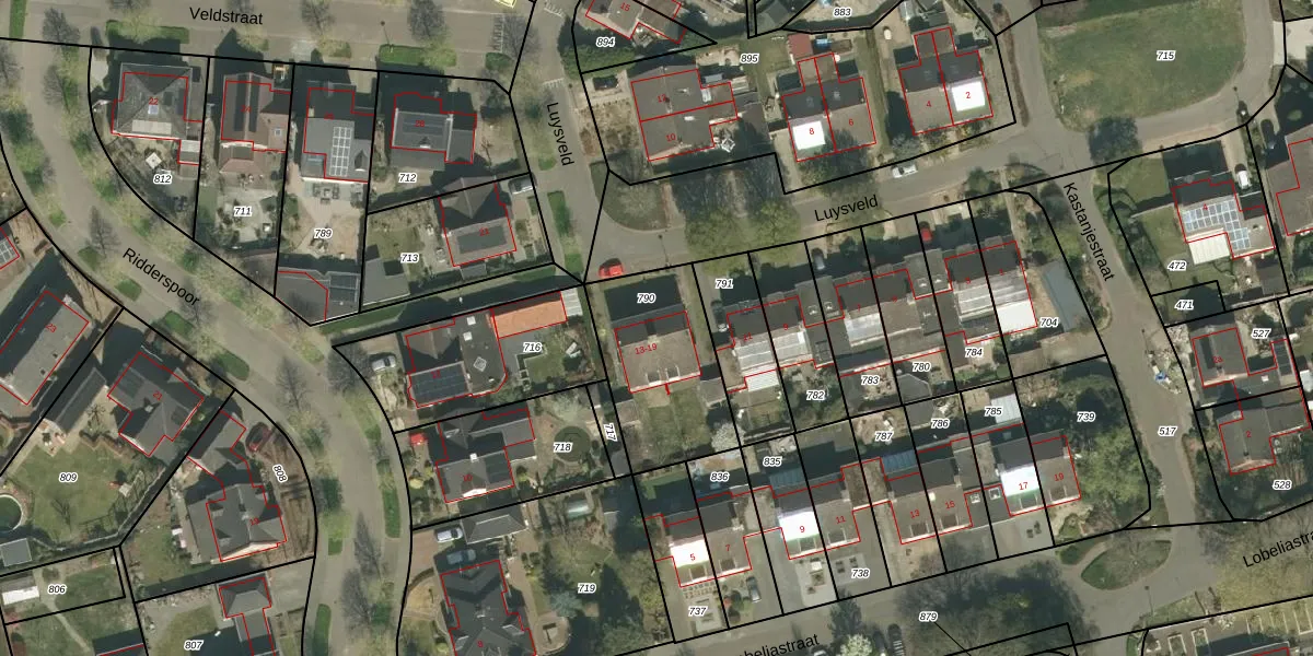Het perceel waarop Luysveld 13 staat heeft een oppervlakte van 516 m². Dit is een groot perceel. De perceeloppervlakte wordt geregistreerd door het Kadaster. Gedetailleerde informatie over de maten van dit perceel kunt u vinden in het rapport Kadastrale kaart met maatvoering van Luysveld 13.