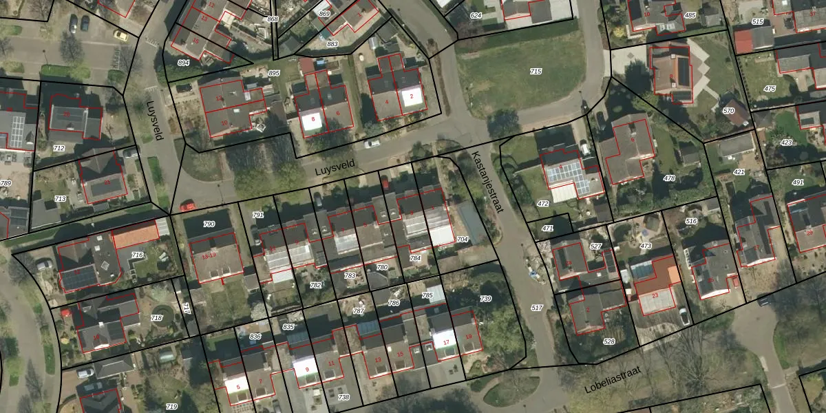 Gebruik de zoekbalk of klik op een perceel voor informatie over de adressen binnen dit perceel.