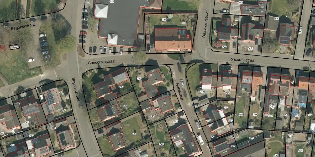Gebruik de zoekbalk of klik op een perceel voor informatie over de adressen binnen dit perceel.