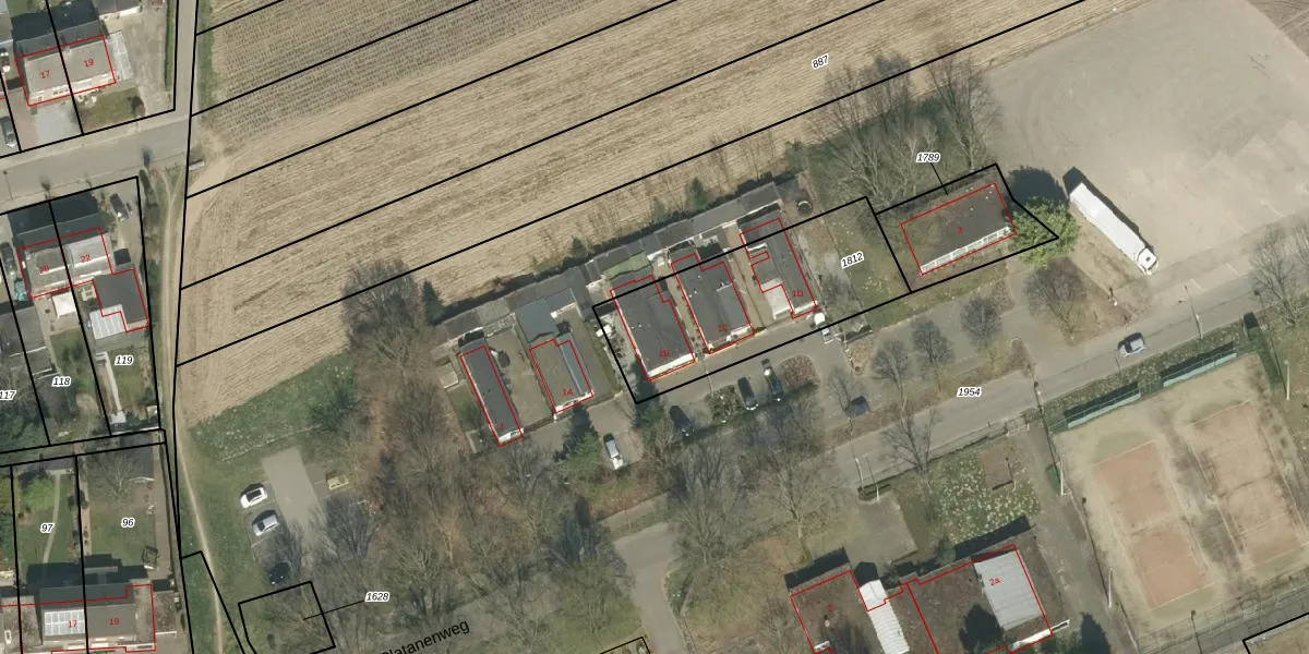 Platanenweg 1-b is gelegen op kadastraal perceel ITV00B1812. Deze kadastrale aanduiding is uniek en wordt gebruikt door het Kadaster om eigendomsrechten en andere zakelijke rechten vast te leggen. Het perceel maakt onderdeel uit van de kadastrale gemeente Ittervoort.