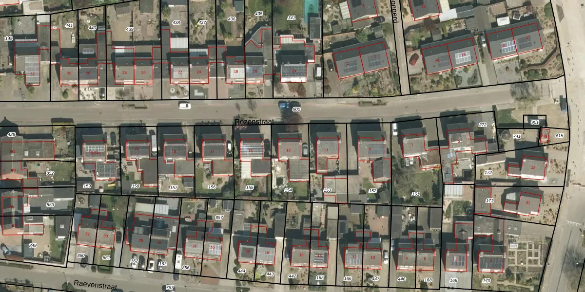 Het perceel waarop Rozenstraat 13 staat heeft een oppervlakte van 347 m². Dit is een groot perceel. De perceeloppervlakte wordt geregistreerd door het Kadaster. Gedetailleerde informatie over de maten van dit perceel kunt u vinden in het rapport Kadastrale kaart met maatvoering van Rozenstraat 13.