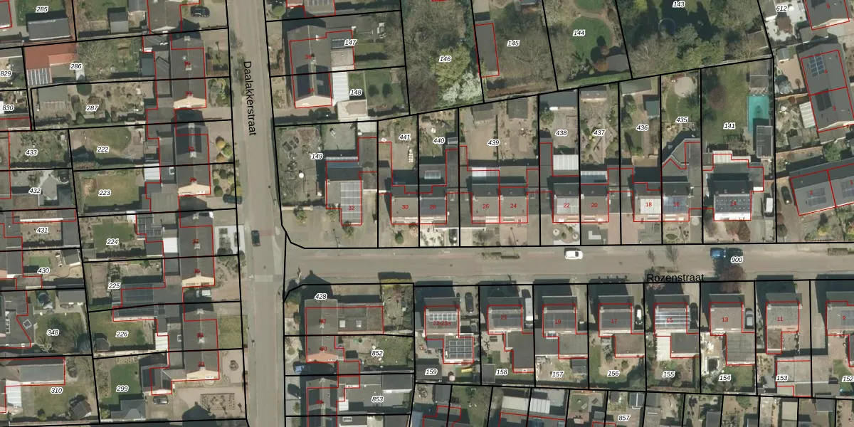 Gebruik de zoekbalk of klik op een perceel voor informatie over de adressen binnen dit perceel.