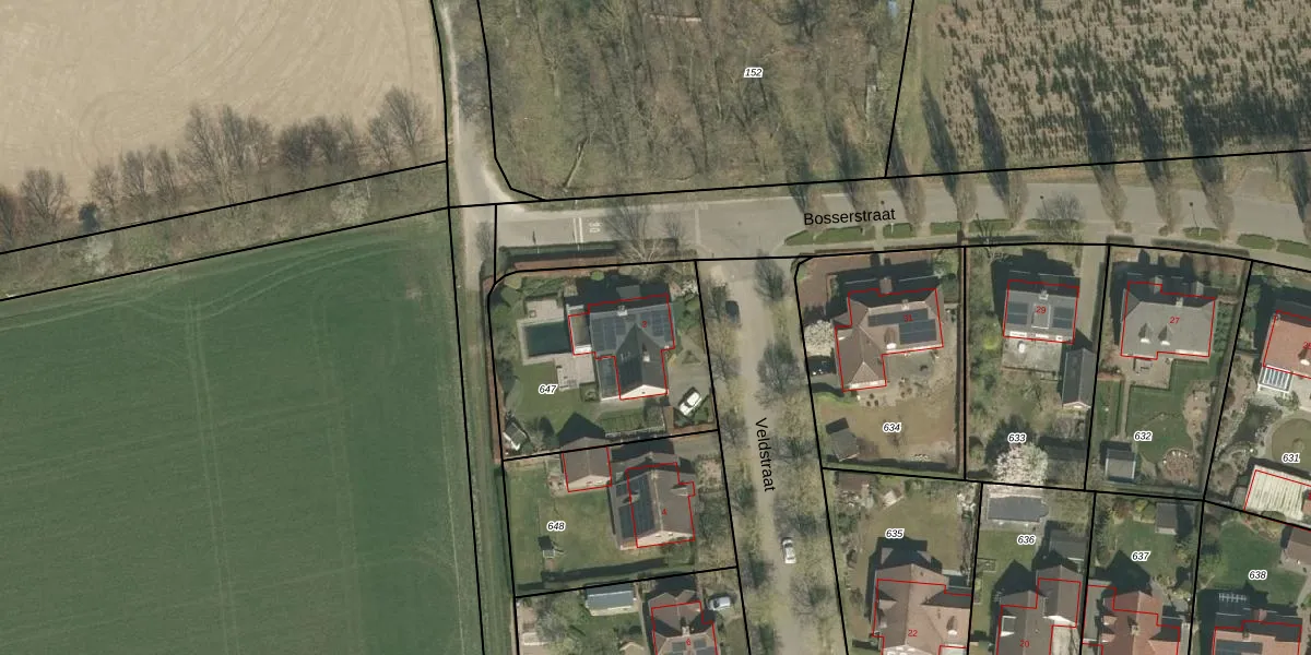 Het perceel waarop Veldstraat 2 staat heeft een oppervlakte van 891 m². Dit is een groot perceel. De perceeloppervlakte wordt geregistreerd door het Kadaster. Gedetailleerde informatie over de maten van dit perceel kunt u vinden in het rapport Kadastrale kaart met maatvoering van Veldstraat 2.