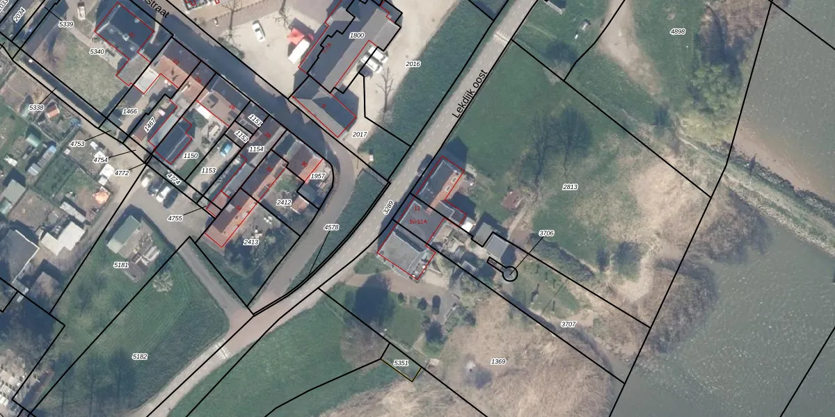 Lekdijk oost 11 is gelegen op kadastraal perceel JVD00B3707. Deze kadastrale aanduiding is uniek en wordt gebruikt door het Kadaster om eigendomsrechten en andere zakelijke rechten vast te leggen. Het perceel maakt onderdeel uit van de kadastrale gemeente Jaarsveld.