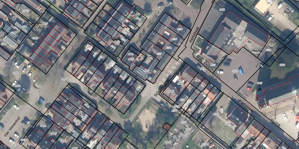 Het perceel waarop Schoollaantje 1 staat heeft een oppervlakte van 225 m². Dit is een middelgroot perceel. De perceeloppervlakte wordt geregistreerd door het Kadaster. Gedetailleerde informatie over de maten van dit perceel kunt u vinden in het rapport Kadastrale kaart met maatvoering van Schoollaantje 1.