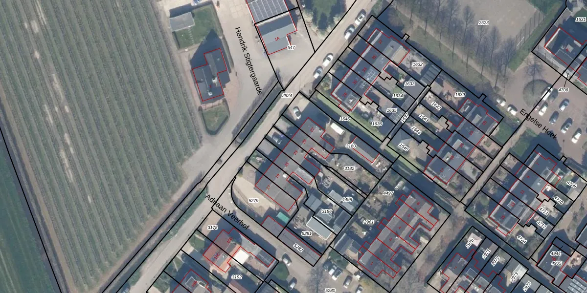 Het adres is gelegen op perceel 4498 in de sectie B en de kadastrale gemeente Jaarsveld. De kadastrale aanduiding is aldus JVD00-B-4498. De gemiddelde perceelgrootte in Jaarsveld is 1872,47 m². Dit perceel is kleiner: de perceeloppervlakte bedraagt 225 m². Het kleinste perceel in de kadastrale gemeente is 0 m² groot. De grootste perceeloppervlakte is 21,6 ha. Op het perceel bevinden zich geen andere adressen. De huidige grenzen van het perceel zijn digitaal in de Basisregistratie Kadaster (BRK) geregistreerd op 06-04-2004.