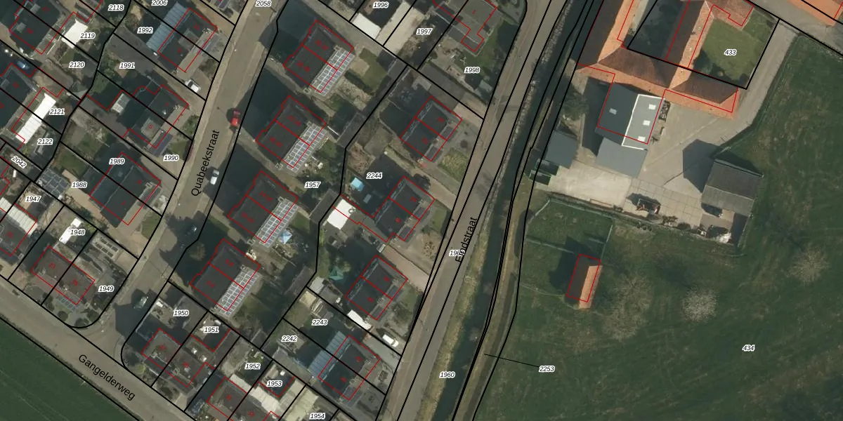 Eindstraat 34 is gelegen op kadastraal perceel JBK00A2244. Deze kadastrale aanduiding is uniek en wordt gebruikt door het Kadaster om eigendomsrechten en andere zakelijke rechten vast te leggen. Het perceel maakt onderdeel uit van de kadastrale gemeente Jabeek.
