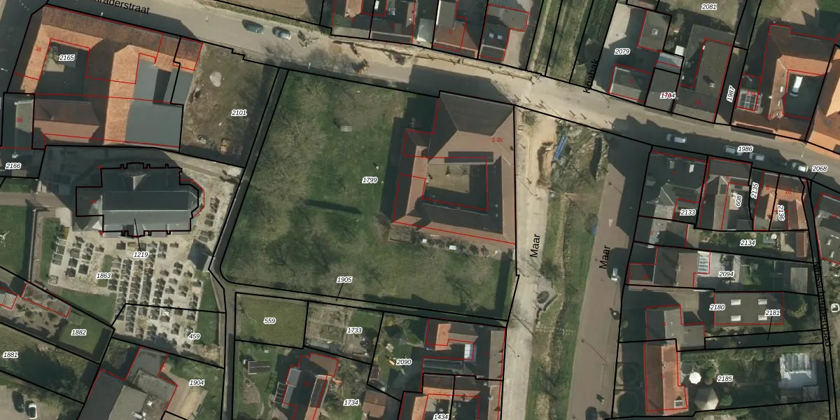Het perceel waarop Maar 2-c staat heeft een oppervlakte van 3300 m². Dit is een zeer groot perceel. De perceeloppervlakte wordt geregistreerd door het Kadaster. Gedetailleerde informatie over de maten van dit perceel kunt u vinden in het rapport Kadastrale kaart met maatvoering van Maar 2-c.