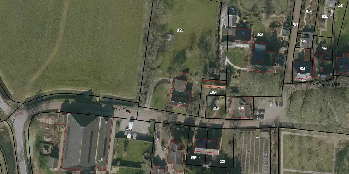 Gebruik de zoekbalk of klik op een perceel voor informatie over de adressen binnen dit perceel.