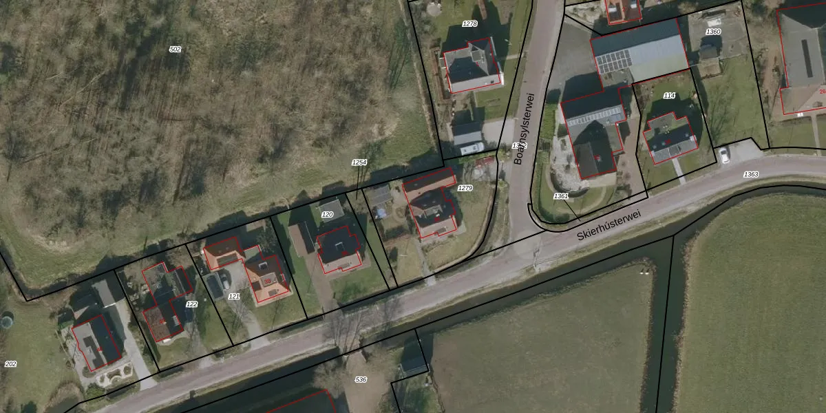 Het perceel waarop Skierhústerwei 34 staat heeft een oppervlakte van 708 m². Dit is een groot perceel. De perceeloppervlakte wordt geregistreerd door het Kadaster. Gedetailleerde informatie over de maten van dit perceel kunt u vinden in het rapport Kadastrale kaart met maatvoering van Skierhústerwei 34.