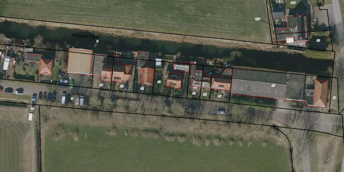 Tsjessingawei 5 is gelegen op kadastraal perceel JSM00F13. Deze kadastrale aanduiding is uniek en wordt gebruikt door het Kadaster om eigendomsrechten en andere zakelijke rechten vast te leggen. Het perceel maakt onderdeel uit van de kadastrale gemeente Jelsum.
