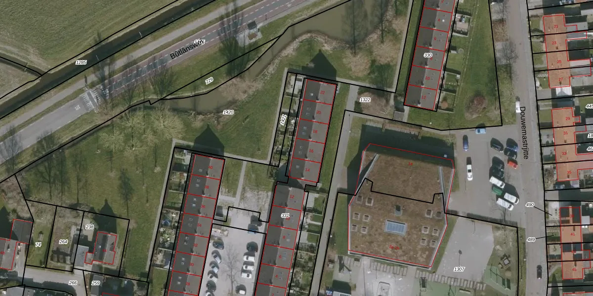 Het perceel waarop Dekamastrjitte 16 staat heeft een oppervlakte van 1580 m². Dit is een zeer groot perceel. De perceeloppervlakte wordt geregistreerd door het Kadaster. Gedetailleerde informatie over de maten van dit perceel kunt u vinden in het rapport Kadastrale kaart met maatvoering van Dekamastrjitte 16.