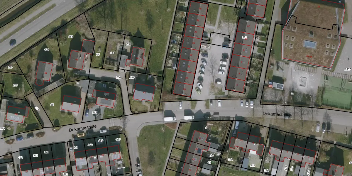 Het perceel waarop Dekamastrjitte 26 staat heeft een oppervlakte van 1580 m². Dit is een zeer groot perceel. De perceeloppervlakte wordt geregistreerd door het Kadaster. Gedetailleerde informatie over de maten van dit perceel kunt u vinden in het rapport Kadastrale kaart met maatvoering van Dekamastrjitte 26.