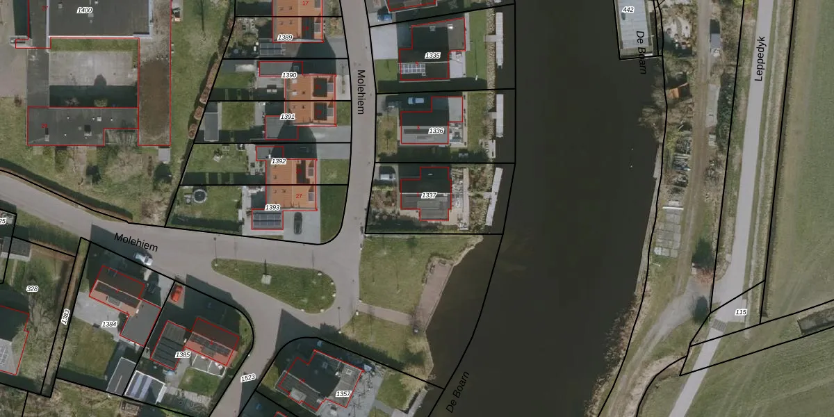 Molehiem 1 is gelegen op kadastraal perceel GRO00L1337. Deze kadastrale aanduiding is uniek en wordt gebruikt door het Kadaster om eigendomsrechten en andere zakelijke rechten vast te leggen. Het perceel maakt onderdeel uit van de kadastrale gemeente Grouw.