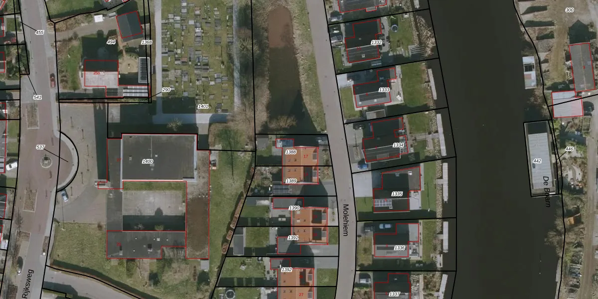 Molehiem 17 is gelegen op kadastraal perceel GRO00L1388. Deze kadastrale aanduiding is uniek en wordt gebruikt door het Kadaster om eigendomsrechten en andere zakelijke rechten vast te leggen. Het perceel maakt onderdeel uit van de kadastrale gemeente Grouw.