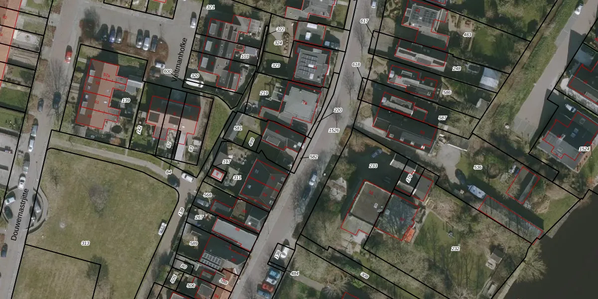Het perceel waarop het adres ligt is GRO00-L-581. De afkorting 'GRO00' staat voor kadastrale gemeente Grouw. De gemiddelde perceelgrootte in Grouw is 4942,58 m². Dit perceel is kleiner: de perceeloppervlakte bedraagt 265 m². Het kleinste perceel in de kadastrale gemeente is 1 m² groot. De grootste perceeloppervlakte is 1,23 km². Er zijn geen andere adressen aanwezig op het perceel. De huidige grenzen van het perceel zijn digitaal in de Basisregistratie Kadaster (BRK) geregistreerd op 19-11-2013.
