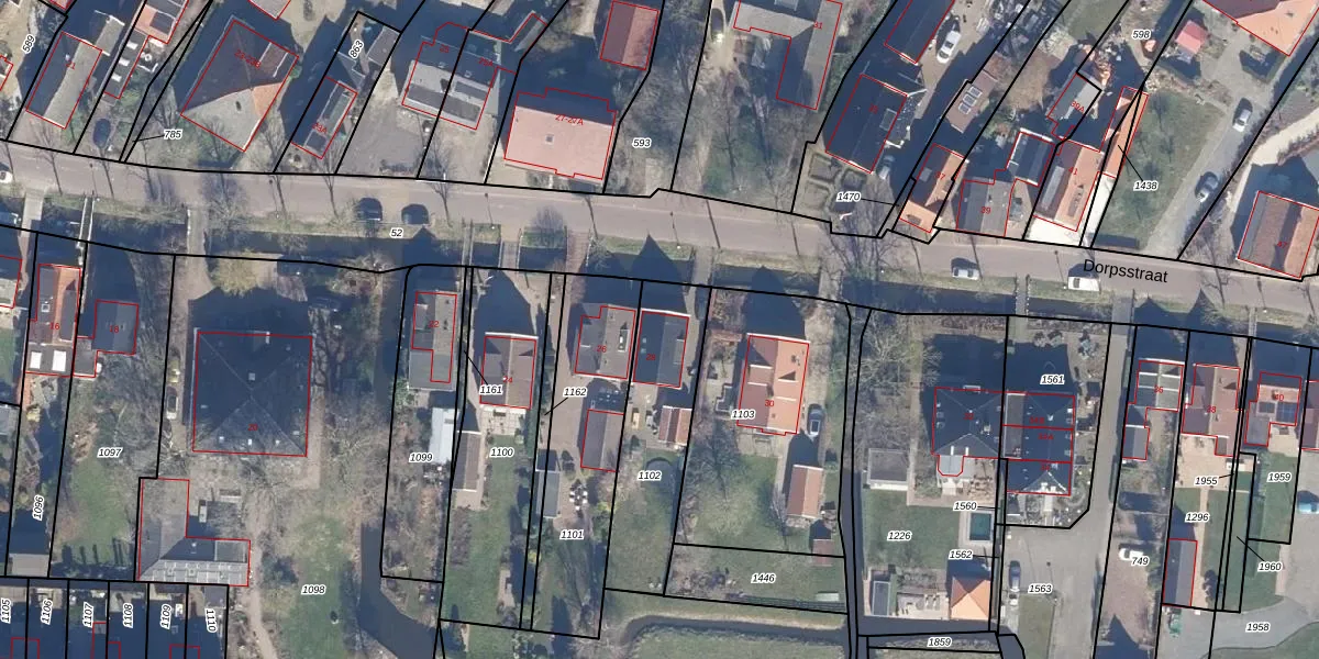 Het perceel waarop Dorpsstraat 28 staat heeft een oppervlakte van 460 m². Dit is een groot perceel. De perceeloppervlakte wordt geregistreerd door het Kadaster. Gedetailleerde informatie over de maten van dit perceel kunt u vinden in het rapport Kadastrale kaart met maatvoering van Dorpsstraat 28.