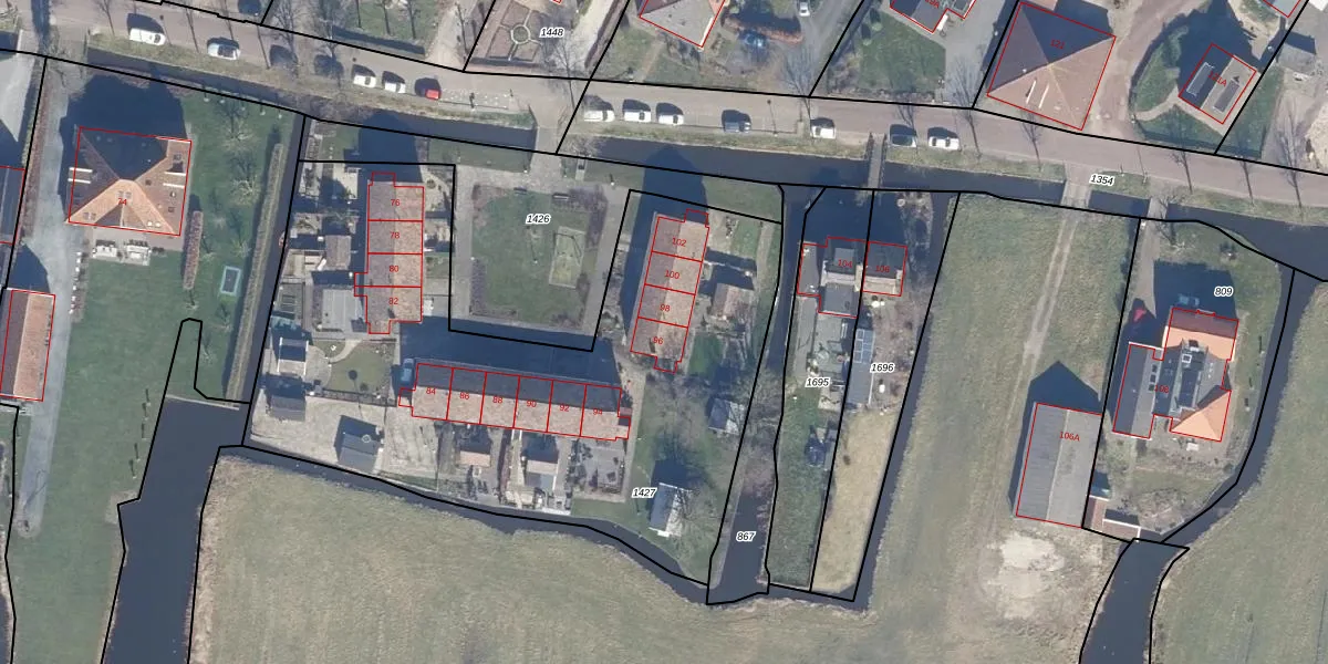 Het perceel waarop Dorpsstraat 96 staat heeft een oppervlakte van 3040 m². Dit is een zeer groot perceel. De perceeloppervlakte wordt geregistreerd door het Kadaster. Gedetailleerde informatie over de maten van dit perceel kunt u vinden in het rapport Kadastrale kaart met maatvoering van Dorpsstraat 96.
