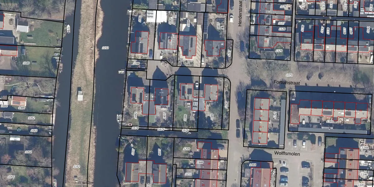 Gebruik de zoekbalk of klik op een perceel voor informatie over de adressen binnen dit perceel.