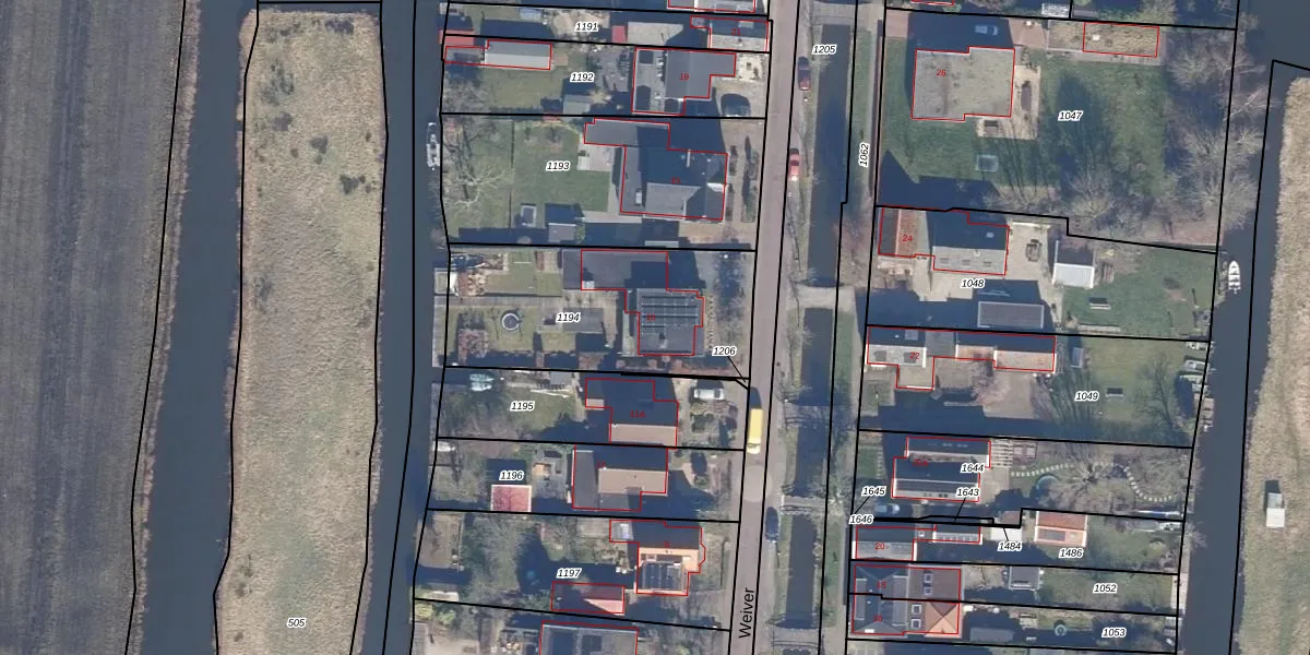 Het perceel waarop Weiver 13 staat heeft een oppervlakte van 933 m². Dit is een groot perceel. De perceeloppervlakte wordt geregistreerd door het Kadaster. Gedetailleerde informatie over de maten van dit perceel kunt u vinden in het rapport Kadastrale kaart met maatvoering van Weiver 13.