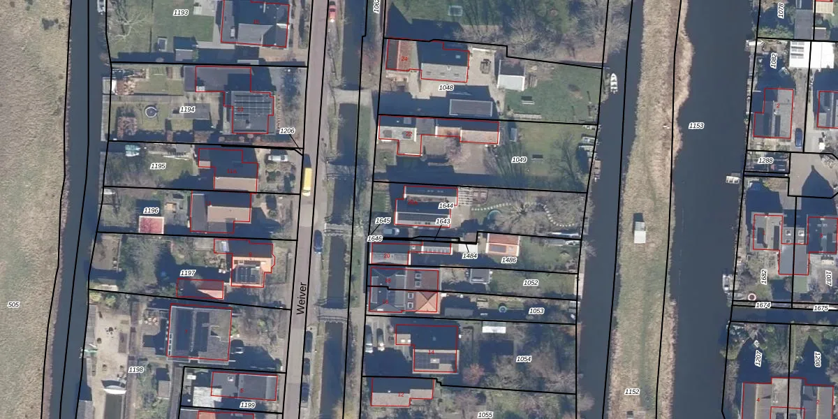 Het perceel waarop Weiver 20-A staat heeft een oppervlakte van 608 m². Dit is een groot perceel. De perceeloppervlakte wordt geregistreerd door het Kadaster. Gedetailleerde informatie over de maten van dit perceel kunt u vinden in het rapport Kadastrale kaart met maatvoering van Weiver 20-A.