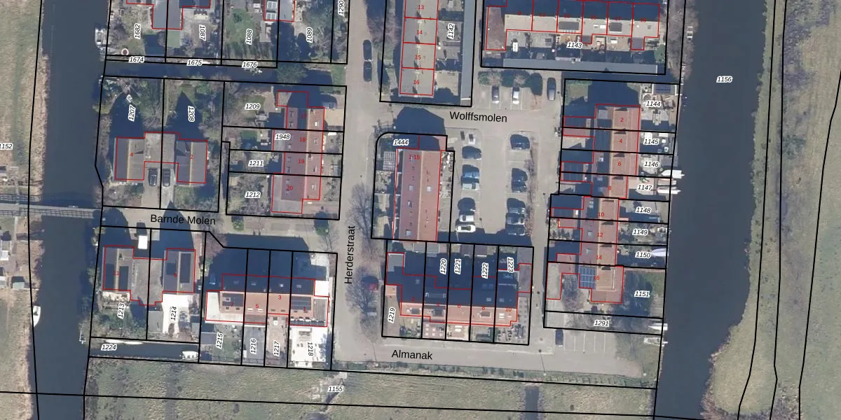 Het perceel waarop Wolffsmolen 5 staat heeft een oppervlakte van 465 m². Dit is een groot perceel. De perceeloppervlakte wordt geregistreerd door het Kadaster. Gedetailleerde informatie over de maten van dit perceel kunt u vinden in het rapport Kadastrale kaart met maatvoering van Wolffsmolen 5.
