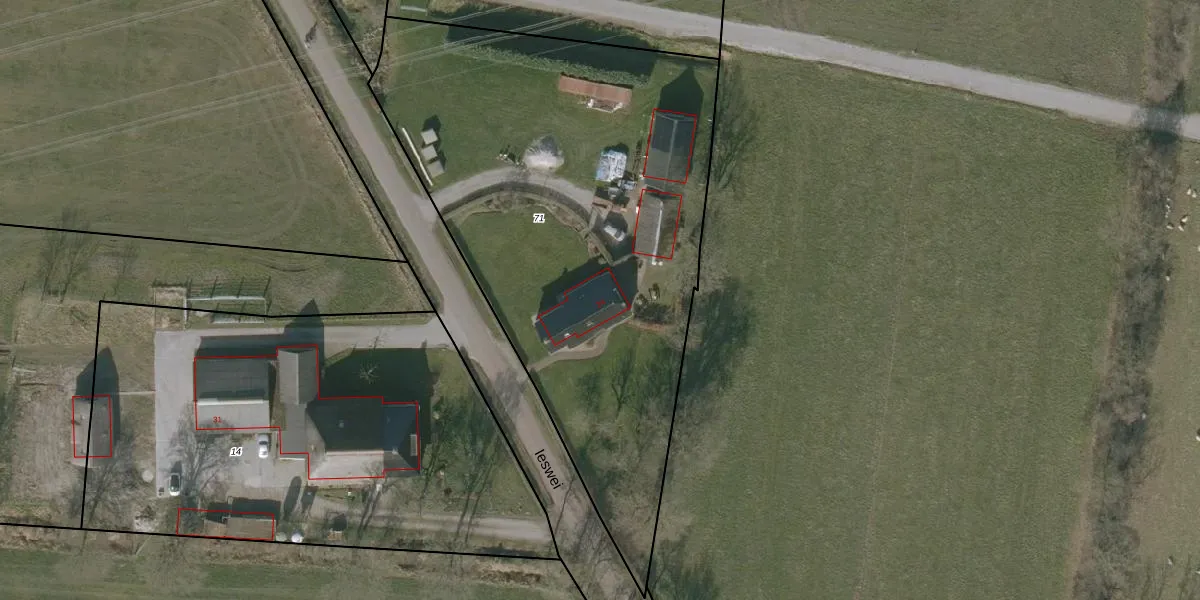 Het perceel waarop Ieswei 24 staat heeft een oppervlakte van 2960 m². Dit is een zeer groot perceel. De perceeloppervlakte wordt geregistreerd door het Kadaster. Gedetailleerde informatie over de maten van dit perceel kunt u vinden in het rapport Kadastrale kaart met maatvoering van Ieswei 24.