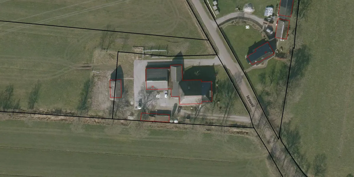 Het perceel waarop Ieswei 31 staat heeft een oppervlakte van 2655 m². Dit is een zeer groot perceel. De perceeloppervlakte wordt geregistreerd door het Kadaster. Gedetailleerde informatie over de maten van dit perceel kunt u vinden in het rapport Kadastrale kaart met maatvoering van Ieswei 31.