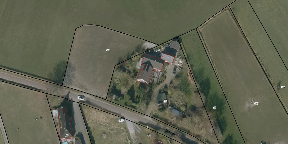 Het perceel waarop Ieswei 8 staat heeft een oppervlakte van 3015 m². Dit is een zeer groot perceel. De perceeloppervlakte wordt geregistreerd door het Kadaster. Gedetailleerde informatie over de maten van dit perceel kunt u vinden in het rapport Kadastrale kaart met maatvoering van Ieswei 8.